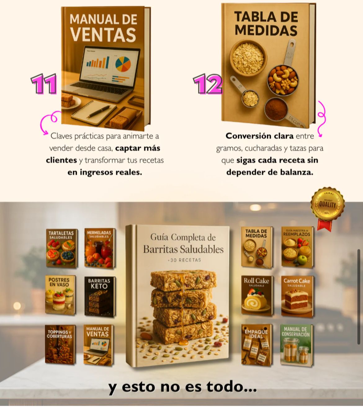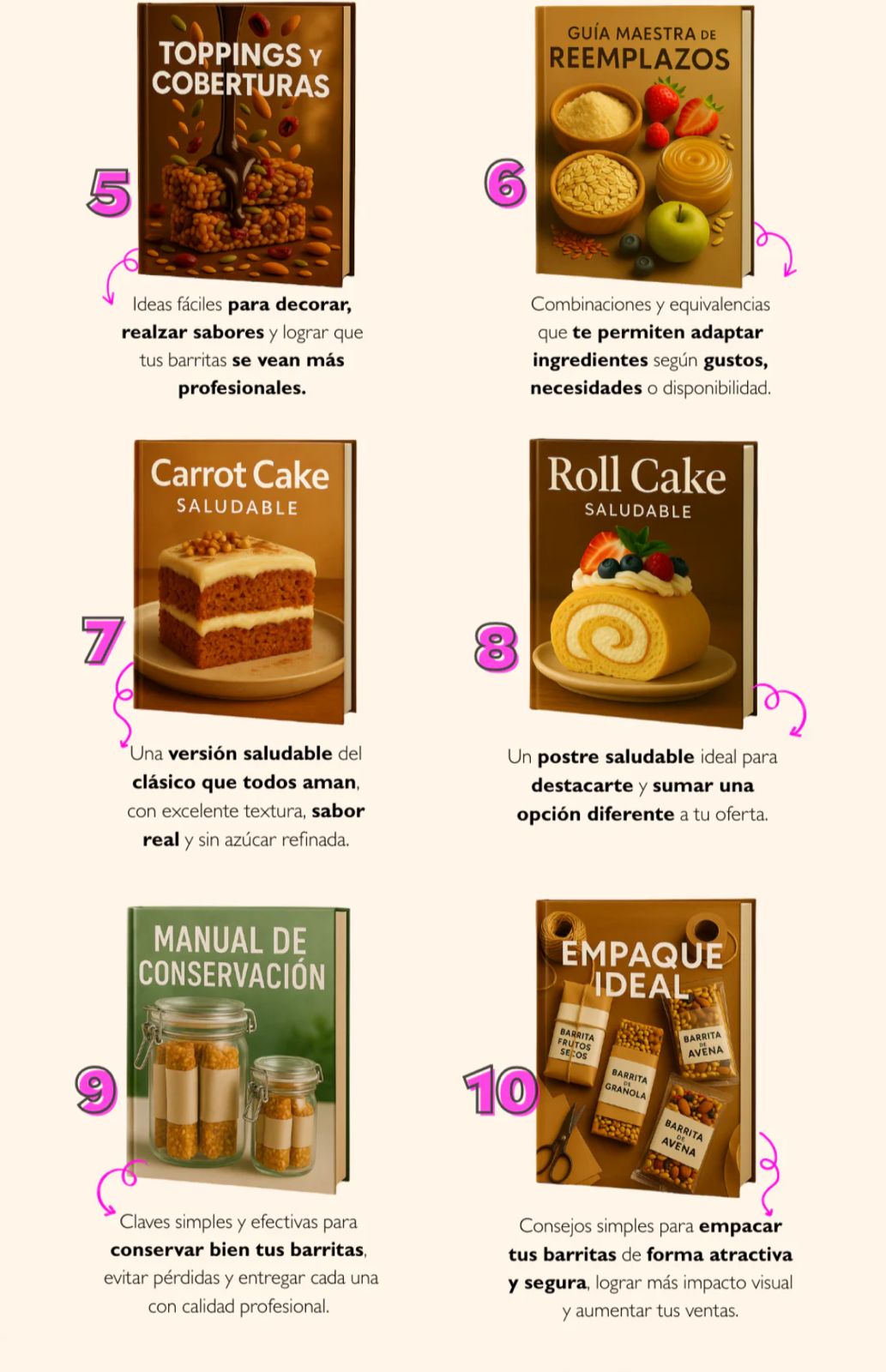 - 🎁 12 bonos extra: empaques, conservación, ventas, toppings, reemplazos y más.